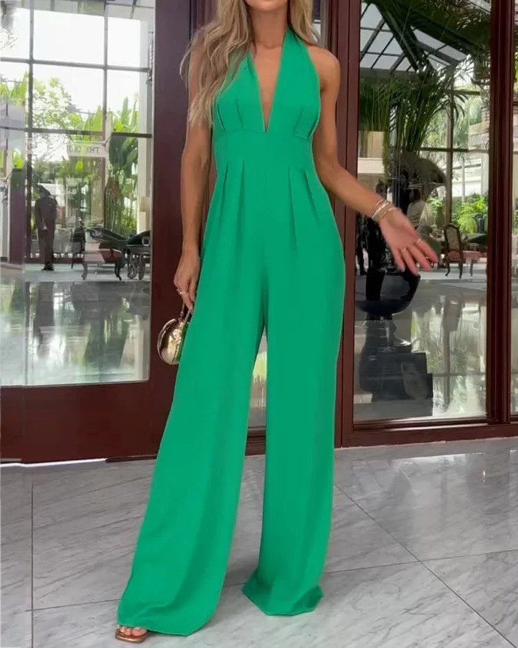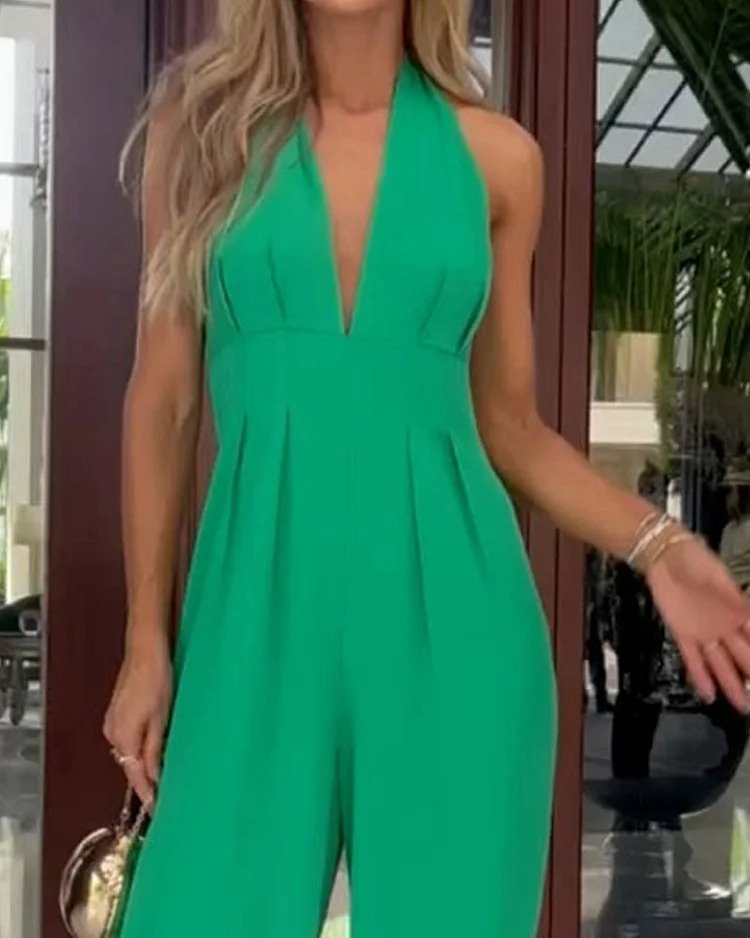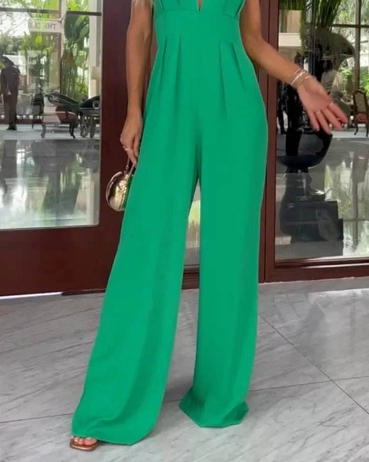 Ensfarget V-hals ermeløs fritidsdress